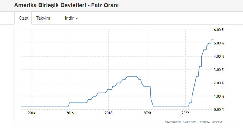 Yukarıdaki grafikte FED’in faiz değişimlerini aşağıda ise ABD Doları’nın Türk Lirası karşısındaki değer artışını görüyorsunuz.